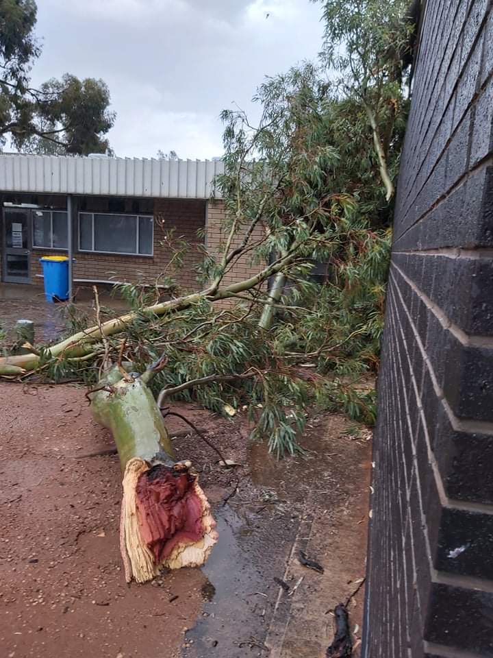Large trees toppled in the area, including through the roof of a classroom at Renmark High School.